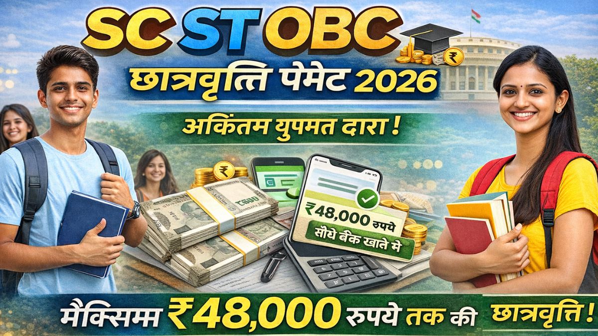 SC ST OBC Scholarship Payment:अनुसूचित जाति, अनुसूचित जनजाति और अन्य पिछड़ा वर्ग के छात्रों के लिए वर्ष 2026 में एक महत्वपूर्ण पहल की गई है। SC ST OBC Scholarship Payment 2026 के तहत 10वीं और 12वीं कक्षा पास करने वाले विद्यार्थियों को आगे की पढ़ाई जारी रखने के लिए आर्थिक सहायता प्रदान की जाएगी। इस योजना का मुख्य उद्देश्य यह सुनिश्चित करना है कि आर्थिक तंगी के कारण कोई भी छात्र अपनी शिक्षा अधूरी न छोड़े। पात्र छात्रों को अधिकतम 48,000 रुपये तक की छात्रवृत्ति सीधे उनके बैंक खाते में भेजी जाएगी।